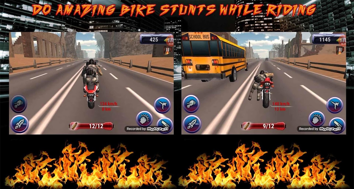 So show your passion for bike racing and be the kingpin of the highway. Be Entertained by thrilling death moto riders. So is there a real racer in you ? then what are you waiting for ,play this awesome Bike Attack Death Race game and enjoy your time.