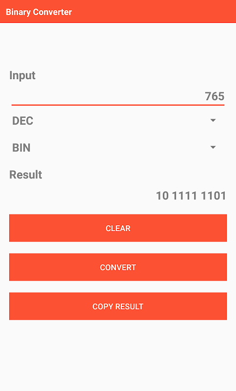 Binary Converter is a simple application to perform transformations between the most used computer numbering systems. The application supports the following numbering systems: