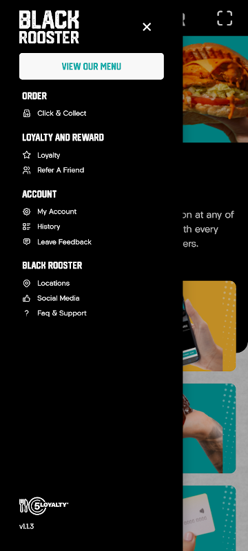 Menümüze göz atmak, en yakın mağazayı bulmak ve çevrimiçi sipariş vermek için uygulamayı kullanın ve Black Rooster Sadakat Puanlarınızı gelecekteki alışverişlerde harcamak üzere biriktirdiğinizden emin olun.