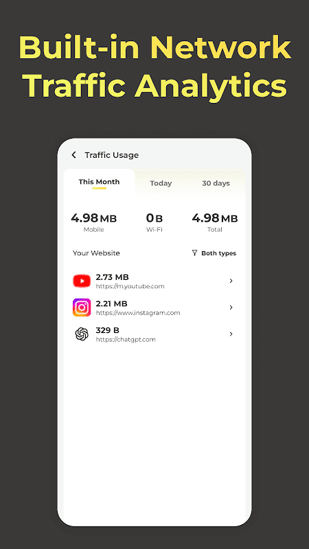✦Yerleşik ağ hızı testi ve trafik izleme, mevcut ağ hızınızı ve veri kullanımınızı kontrol edin.