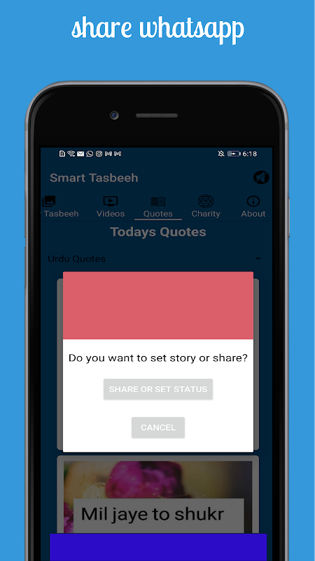 -> Özellik, arkadaşlarla paylaşılabilecek bazı Zikir, tesbih alıntılarını gösterir