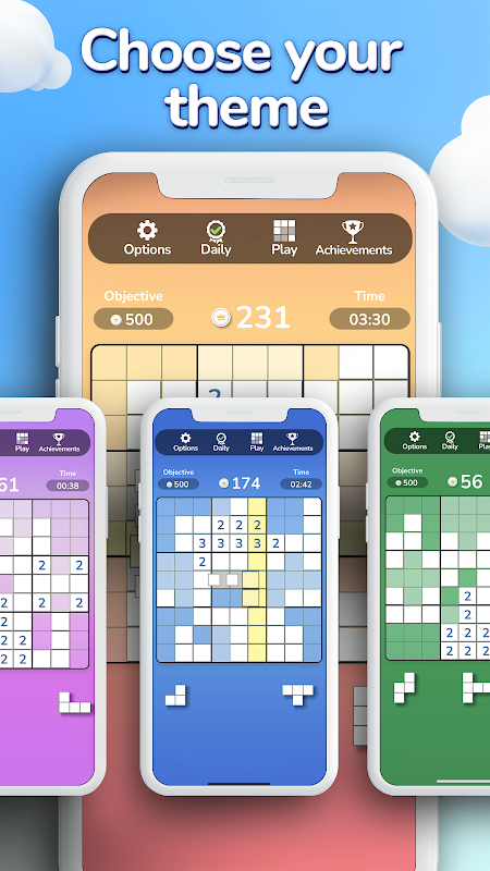 Oynamak için, blokları 9x9'luk ızgaraya bırakın, tahtayı temiz tutmak için çizgileri ve kareleri doldurun. Günlük zorlukları tamamlayabilir veya en yüksek puanınızı geçmek için özgürce oynayabilirsiniz. Oyun, bir kombo yapmak için aynı anda birkaç öğeyi kaldırmanıza ve bir çizgi elde etmek için üst üste birkaç başarılı hamle yapmanıza olanak tanır. Dahası, oyunu seçtiğiniz bir temayla özelleştirebilirsiniz.