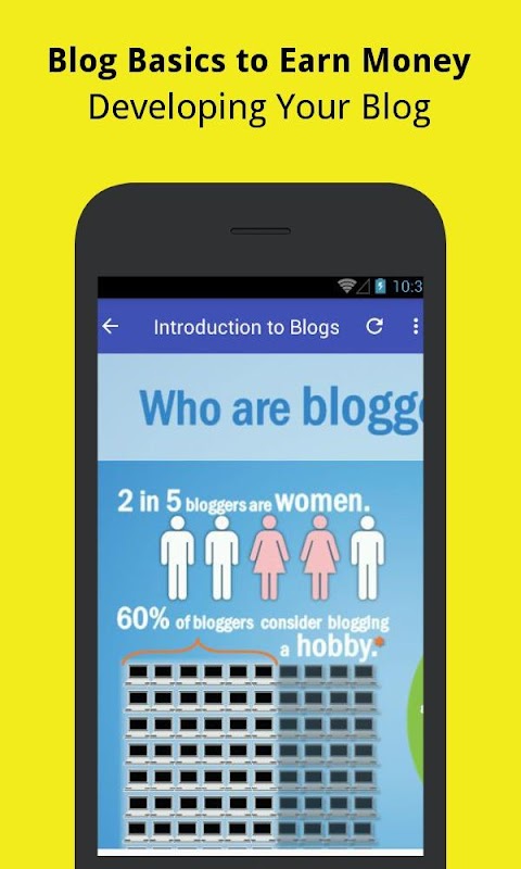 In this app, you'll learn about blogs, bloggers and how to earn money from your blog!