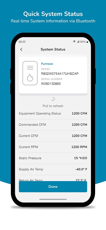İster bir konutta servis çağrısı yapıyor olun, ister büyük bir tesise 40 ünite kuruyor olun, ücretsiz BluArch uygulamasının Bluetooth® özelliği, etkinleştirilmiş bir HVAC sistemiyle birlikte, kurulum ve sorun gidermeyi hiç olmadığı kadar kolaylaştırır.