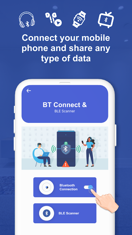 With its high-quality features such as bluetooth connection manager, pairing app, battery consumption, user friendly interface, data transfer, security, multi device support, bluetooth headphones connect app has become a popular means of communication with bluetooth connector. just tap on the Bluetooth scanning option in Bluetooth connect app and pair the device without any interruption.