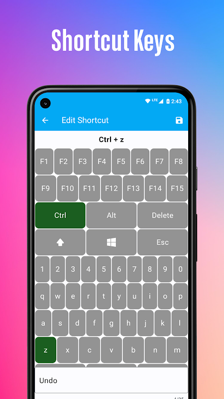 Uygulama, altı farklı klavye tuşunun bir kombinasyonunu aynı anda gönderebilen kısayol tuşları oluşturmayı destekler. Örneğin, bir kullanıcı ctrl, alt ve delete tuşlarını aynı anda bağlı bir bilgisayara gönderen bir kısayol tuşu oluşturabilir.