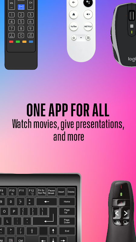 Uygulama, mevcut bilgisayarınıza, tabletinize, akıllı televizyonunuza veya diğer Bluetooth özellikli cihazlarınıza bağlanabilen, kullanıcı dostu, hepsi bir arada bir Bluetooth klavye, Bluetooth fare ve Bluetooth uzaktan kumanda olarak çalışır. Uygulamayı tabletinizde film izlemek için medya oynatıcı veya bilgisayarınızı kontrol etmek için dokunmatik yüzey olarak kullanın. Uygulama ayrıca, uzun görevler veya sunumlar sırasında bilgisayarın uyku moduna geçmesini önlemek için kullanılabilen bir fare sallama özelliğine de sahiptir.