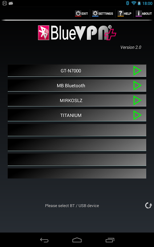 2. Open the BlueVPN+ app on client, click the BT host name or the USB device name in the list