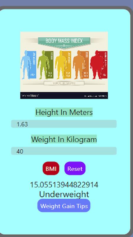 Bu uygulama boyunuza ve kilonuza bağlı olarak kilo alma ve kilo verme ipuçlarını çözecektir. kilo alma ve kilo verme ipuçları.