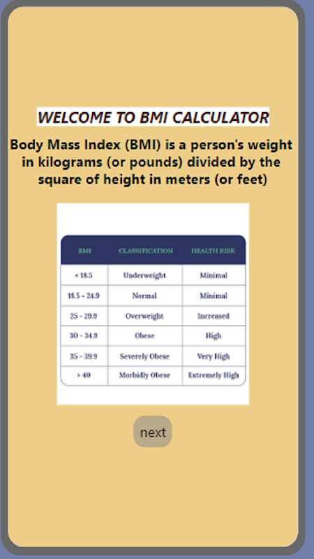 Beden Kitle İndeksi (BMI), bir kişinin kilogram (veya pound) cinsinden ağırlığının, metre (veya fit) cinsinden boyun karesine bölünmesiyle elde edilen değerdir. Metre cinsinden boy ve kilogram cinsinden ağırlık girildiğinde.