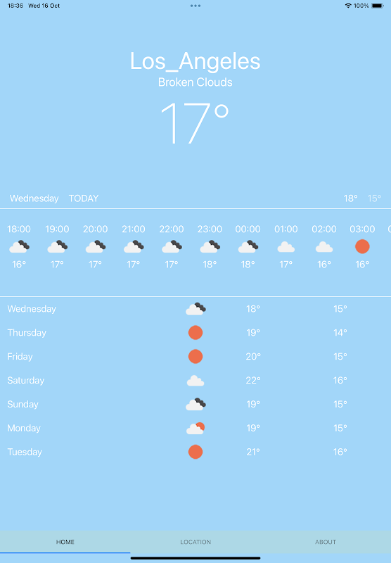 Bu uygulama, bulunduğunuz yerdeki hava durumunu gösterebilir ve tahminleri hem Santigrat hem de Fahrenhayt cinsinden görüntüleyebilir.