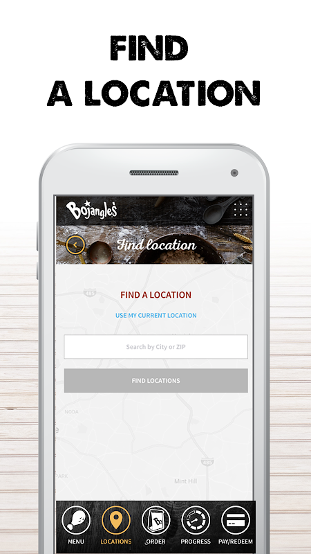 Participation available only in select Bojangles' locations. Please check the Locations tab in the app to see if there's a participating Bojangles' near you!
