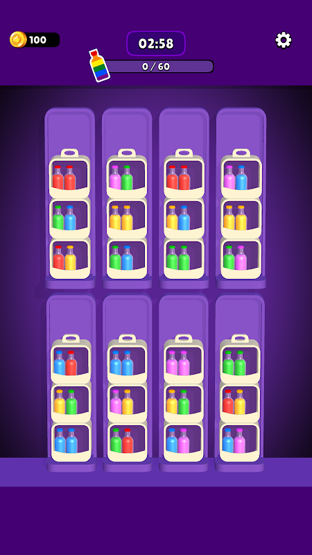 Basit ama tatmin edici oyunları seviyorsanız Bottle Box mükemmel bir seçimdir! Beyninizi eğitin, organizasyon becerilerinizi test edin ve sorunsuz, stressiz bir sıralama deneyiminin keyfini çıkarın.