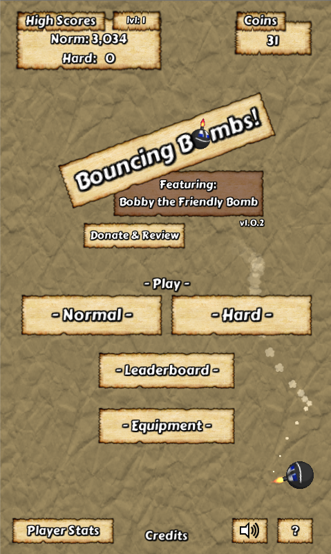 NOTE: Unfortunately, the leaderboard service used for Bouncing Bombs appears to have shut down. Until a new leaderboard service can be located, this feature of Bouncing Bombs will, sadly, be non-functional :(