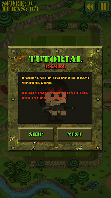 Tap right unit (soldier, commando, terrorist, rambo) to trigger the biggest chain reaction and accomplish missions with limited number of turns.