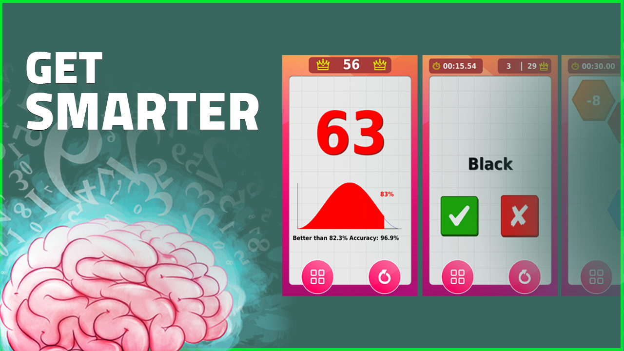 Currently we provide these three type of games match the color, sum up the numbers and match the figures. Each of them will improve speed, logical thinking and brain work.