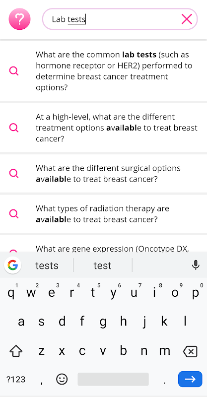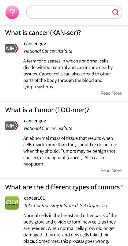 Bu uygulama sahip olabileceğiniz her temel meme kanseri ile ilgili en kapsamlı soruları ve standart NIH / NCI yetkili cevapları içerir. Sorular ve Cevaplar uygulaması gibi SSS kullanımı son derece basittir ve sorunuzu arayabilir ve aradıklarınızla en iyi eşleşen soruya dokunabilirsiniz. Aradığınız soruyu bulamazsanız, bize e-posta atmanız yeterli: [email protected]