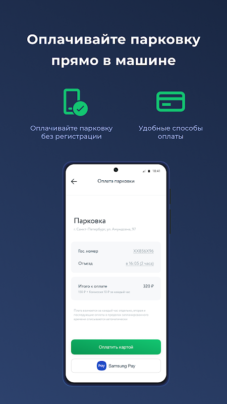 - Оплата парковки в СПб без регистрации, не выходя из машины;