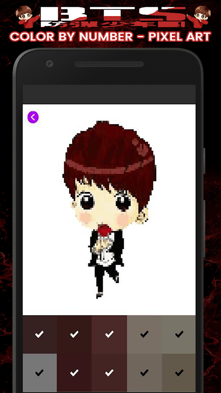 BTS Army Chibi Color By Number - Pixel Art Coloring App is free coloring book contains many pixel pictures of members BTS, V, Jungkook, Park Jimin, Suga, Jin, RM, and JHope..
