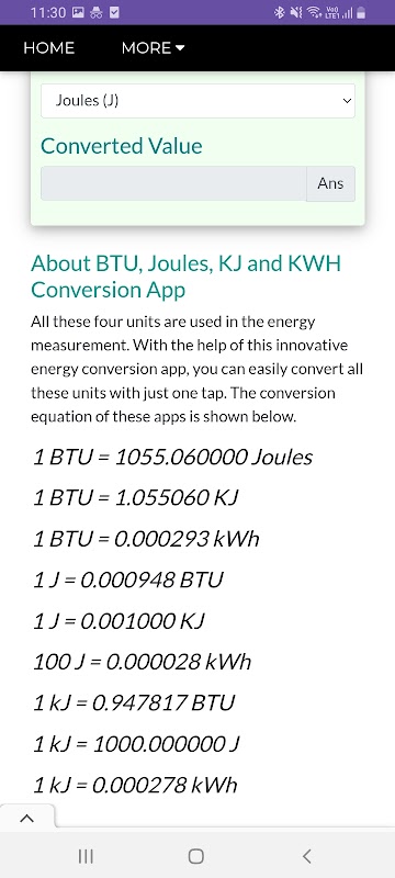 BTU, Joules, KJ, KWH Converter hakkında
