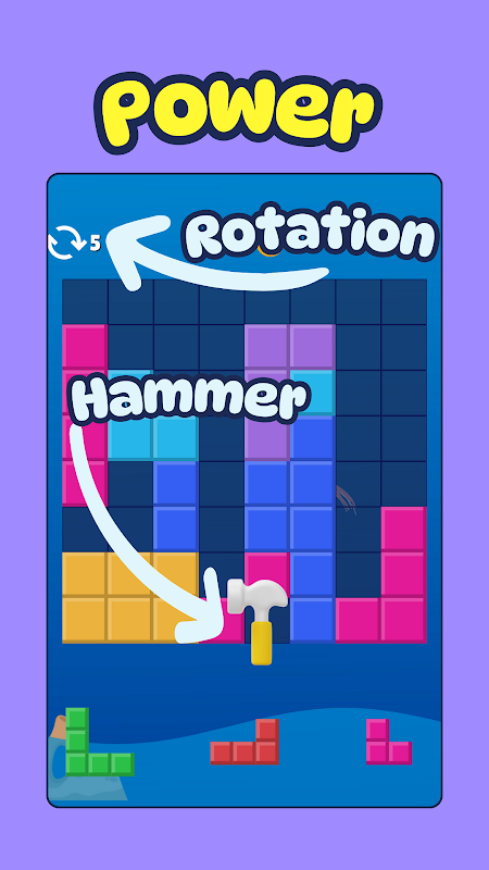 Blokların düzenini değiştirmek için rotasyon 🔄 ve zorlu blokları parçalamak için çekiçler 🔨 gibi güçlü yeteneklerin kilidini açın, bu da seviyeleri geçmede ve ödüller kazanmada size avantaj sağlar. 🏆
