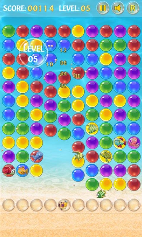 Seviyeyi temizlemek için aynı renkteki iki veya daha fazla baloncuğu eşleştirin ve seviye atlamak için renkli baloncuktaki balıkları kristal baloncuğa kurtarın.