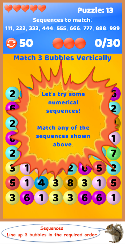 ★ Yönlendirildiği gibi yatay (soldan sağa) veya dikey (yukarıdan aşağıya) istenen sonucu elde etmek için 3 baloncuğu eşleştirmek amacıyla bitişik baloncukları değiştirmek için sürükleyin.