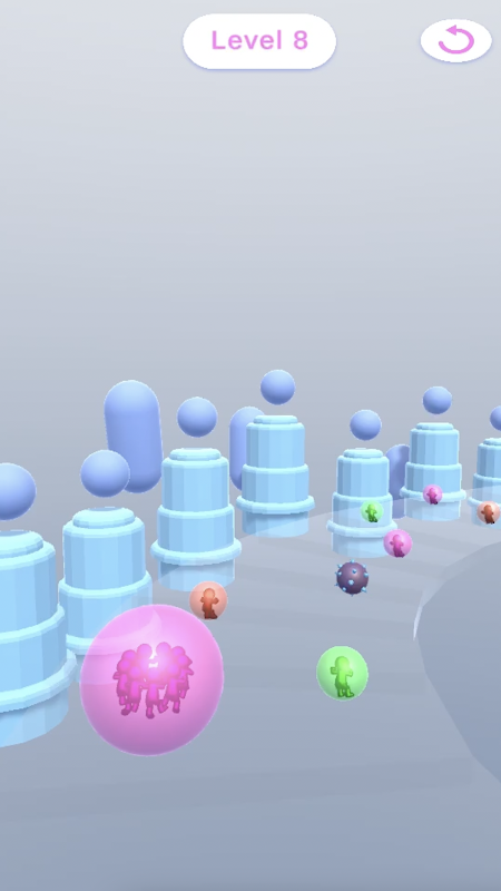 Collect stickmans of the same color, grow your bubble, beat your opponents and win the race!