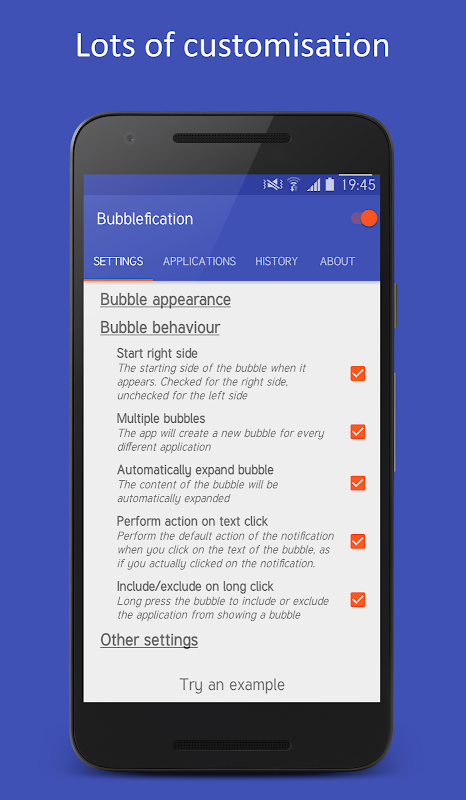 Bubblefication is a new way to view your notifications. It can read your notifications from any app and shows it as a floating bubble on your screen.
