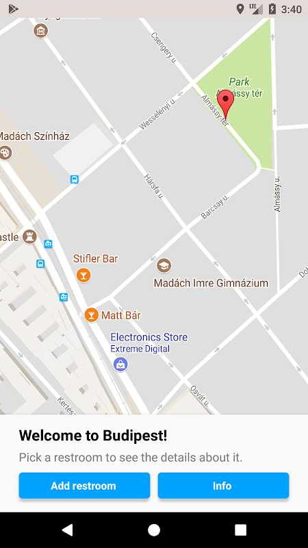 Budipest is a community-based toilet finder app. Join our community by downloading the app, and find the nearest restroom anytime you need it. If you want, you can help others by adding restrooms to the app.