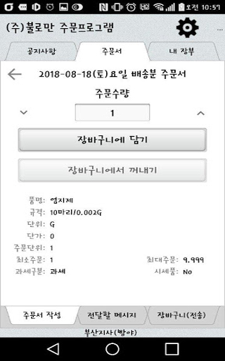 주식회사 불로만의 모든 지사와 가맹점에서 본사로의 물류주문 및 수금을 모바일을 통해 쉽고 편리하게 처리할 수 있도록 개발된 모바일 앱
