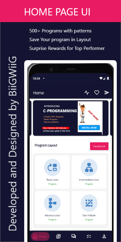 This app helps to solve C Programming code and Pattern C Programming . This app contains almost 500+ Programs and 2000+ Interview Examination Questions. This app has a very simple User Interface and contents can easily understood by User.
