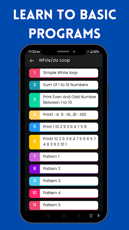 Learn C uygulaması, önceden programlama bilgisi gerektirmez ve C programlamayı öğrenmek isteyen yeni başlayanlar için mükemmeldir.