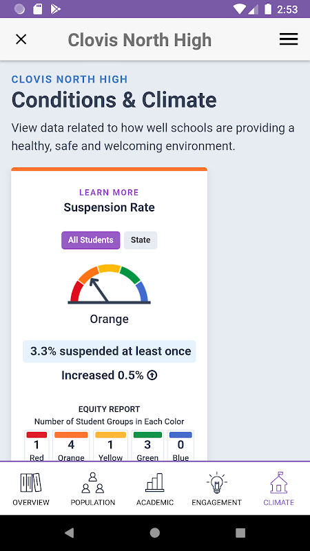 Kaliforniyalılar, California School Dashboard'u temel alan bilgilere kolayca erişmek için CA Dashboard mobil uygulamasını kullanabilir. Dashboard, California’nın yeni hesap verebilirlik sistemidir ve ebeveynlerin ve eğitimcilerin, iyileştirilmesi gereken güçlü yönleri ve alanları belirlemelerine yardımcı olur. Dashboard ile California, ilçelerin, okulların (yüksek riskli öğrencilere hizmet veren alternatif okullar da dahil olmak üzere) ve öğrenci gruplarının devlet tedbirleri arasında nasıl performans gösterdiğini ve yerel gösterge önlemlerine cevap verdiğini bildirmektedir.