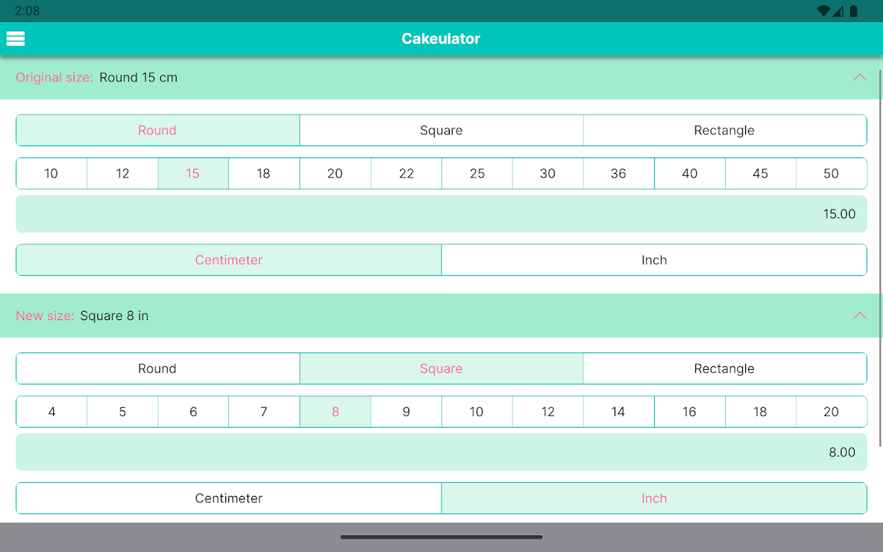 Sadece bir reçete ayarlamak isterseniz, hem FROM ölçüm birimini hem de TO ölçüm birimini reçeteden birime ayarlayabilirsiniz; Cakeulator sadece ölçeklendirmeyi hesaplar.