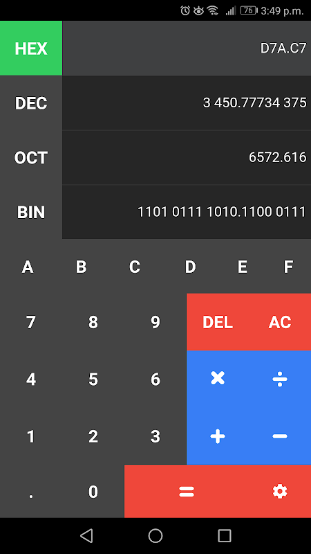 Sayısal taban dönüştürücü ve hesaplayıcı (BIN, OCT, DEC, HEX)