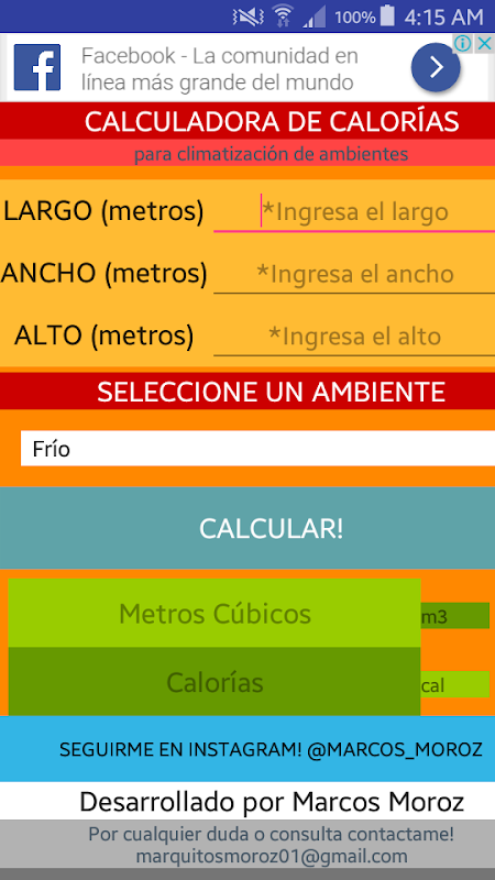 Con esta aplicación podes calcular las calorías de un ambiente para saber que equipo de calefacción tenes que comprar para tu ambiente! Es facil de usar y gratuita.