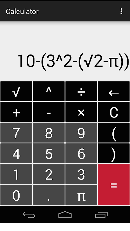 İç içe parantez, güç, kök ve Pi destekleyen bir hesap makinesi.