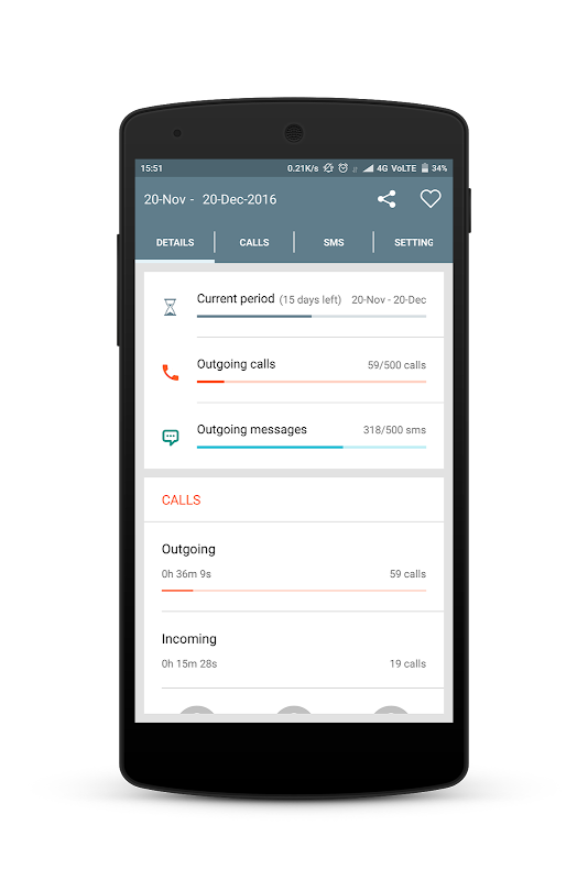 ☑️ Details Screen: get and overview of calls and messages on one page.
