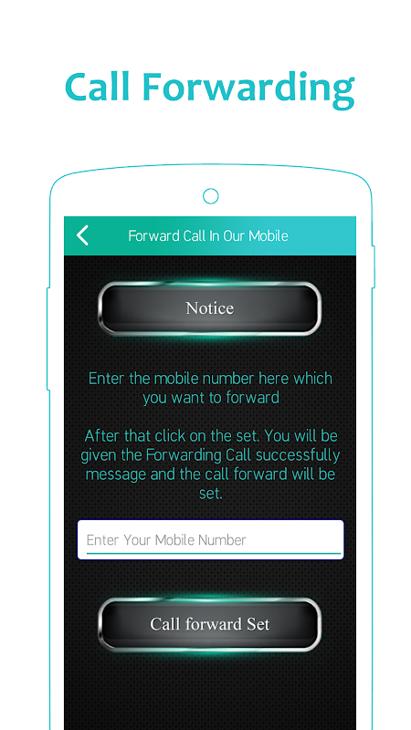 Call Forwarding app is easy and simple application to use for forwarding your incoming call to another number.