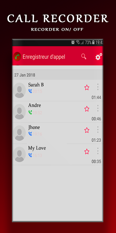 Callrecorder'ı kullanarak, otomatik arama kaydını yapabilir ve istediğiniz herhangi bir telefon görüşmesini kaydedebilirsiniz.