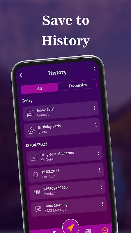 Daha önce taradığınız tüm QR kodlarını tek bir yerde saklayarak, ihtiyaç duyduğunuzda önemli bilgilere hızlı bir şekilde erişmenizi kolaylaştırın.