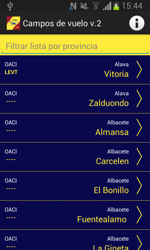 Bu bilgiler BİR RESMİ YAYIN AERONAUTICA DEĞİLDİR. Bu D.Federico IBORRA (ULM Pilot) sahipleri veya hava meydanları yöneticileri elde edilen verilerin bir derlemesidir. Bu veriler, bu uygulamanın geliştirilmesi için Carlos Alonso (ULM Pilot) tarafından aynı şekilde güncellendi. Bu listesinin içeriği dikkatle ve sadece microlight uçuş (Ulm) veya uçak (PPL) planlanmasında dikkate alınması gereken başka bir bilgi kaynağı olarak kullanılmalıdır.