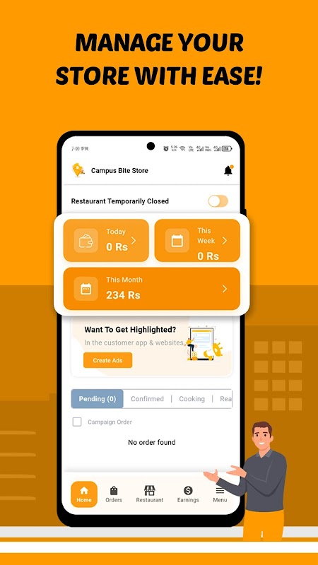 Campus Bite - Store Uygulaması aracılığıyla operasyonlarını optimize eden, büyüyen gıda işletmeleri ağının parçası olun. İyileştirilmiş verimliliğin, daha yüksek müşteri memnuniyetinin ve önemli olana, yani lezzetli yemekler sunmaya odaklanmanızı sağlayan kolaylaştırılmış bir sürecin keyfini çıkarın.