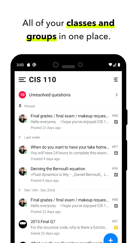 Campuswire, sınıf tartışmaları, soru cevap ve duyurular son derece basit hale getiren üniversite sınıfları için bir araçtır.