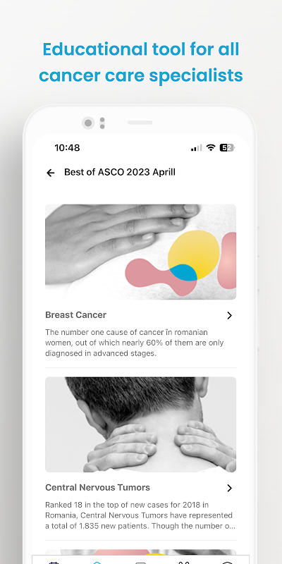 Kanser eğitimi uygulaması, uygulamalarını ve bilgilerini geliştirmeyi amaçlayan tüm kanser bakım uzmanları için bir eğitim aracı olarak tasarlanmıştır.