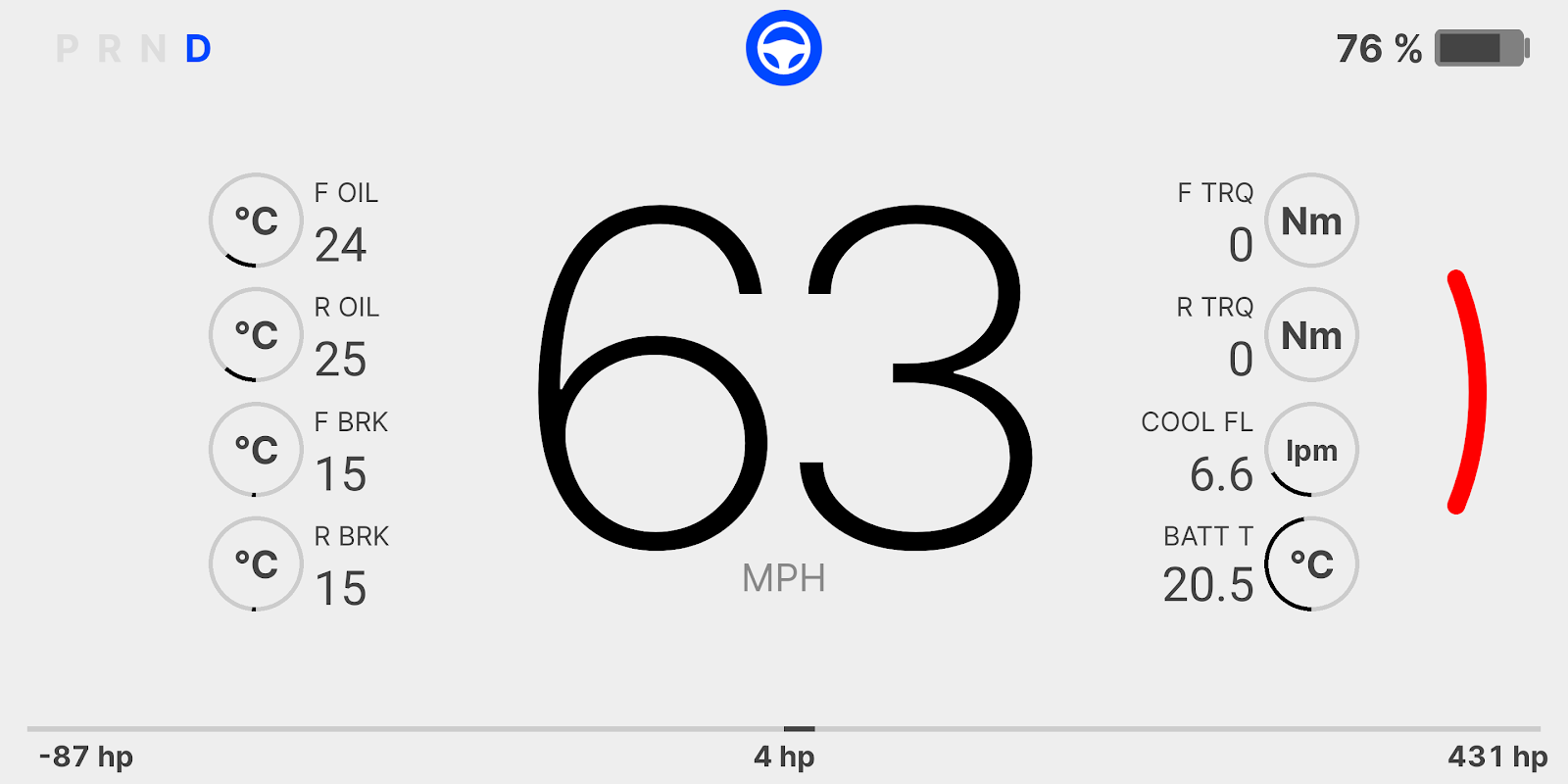 HP veya kW cinsinden canlı güç göstergesi