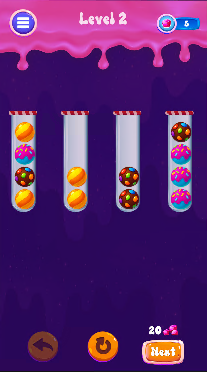 Candy Sort'a hoş geldiniz, beyninizi rahatlatıp eğitmenize yardımcı olacak eğlenceli ve bağımlılık yaratan bir bulmaca oyunu! Renkli şekerleri, her tüpte aynı tür şeker olacak şekilde test tüplerine yerleştirin. Ne kadar yükseğe çıkarsanız, zorluk o kadar zorlaşır, ancak eğlence her zaman vardır!