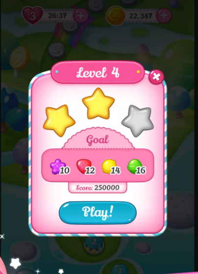 Daha ileri gitmek için 3 şekeri eşleştirin. Resmi "ŞEKER" oyunu.