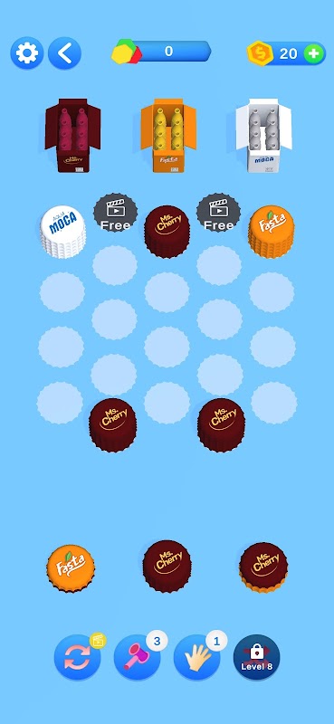 Klasik bulmaca oyunlarının bu benzersiz versiyonunda kasaları doldurmak için soda kapaklarını sıralayın ve istifleyin.